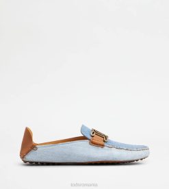 mule gommino din denim și piele femei Tod’s 080D75 albastru deschis/maro