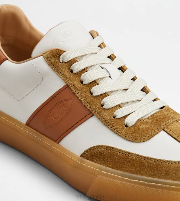 adidași din piele netedă, cu inserții de piele intoarsă și logo-ul tod’s ștampilat pe lateral. perfecte pentru a vă îmbunătăți aspectul de zi cu zi, vin cu pietricele de cauciuc distinctive pe călcâi și talpa exterioară din cauciuc.