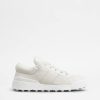 Selecția de pantofi sport Tod’s este îmbunătățită de un nou stil urban care aduce un omagiu temei emblematice a tălpii exterioare cu pietricele din cauciuc. caracterizate printr-o parte superioară din piele moale, prezintă monograma maxi tod’s brodata pe limbă.