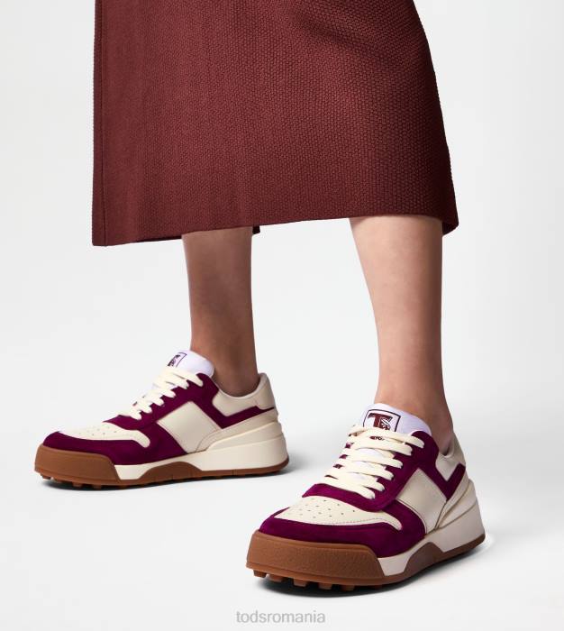 Selecția de pantofi sport Tod’s este îmbunătățită de un nou stil care aduce un omagiu temei emblematice cu pietricele de cauciuc. confecționați din piele netedă și piele de căprioară, acești pantofi sport vin cu logo-ul tod’s ștampilat pe lateral.