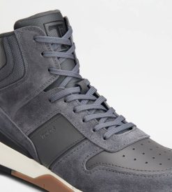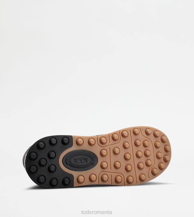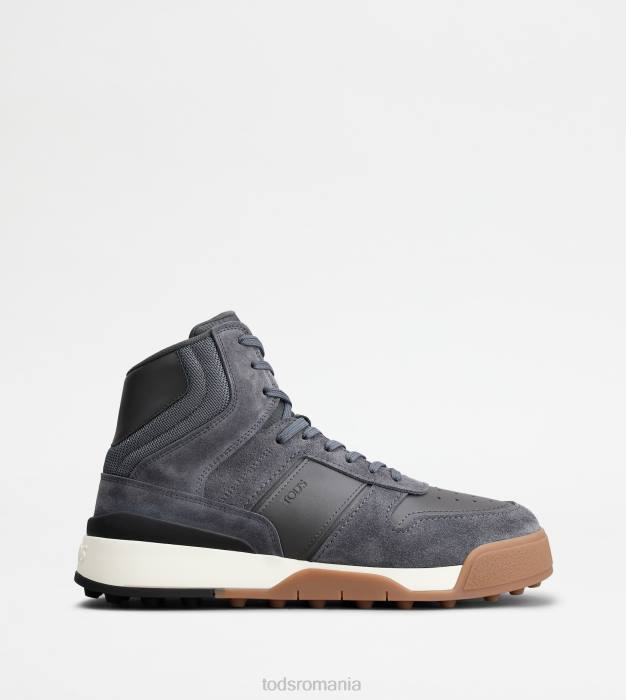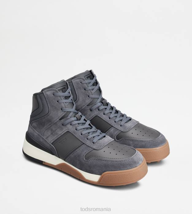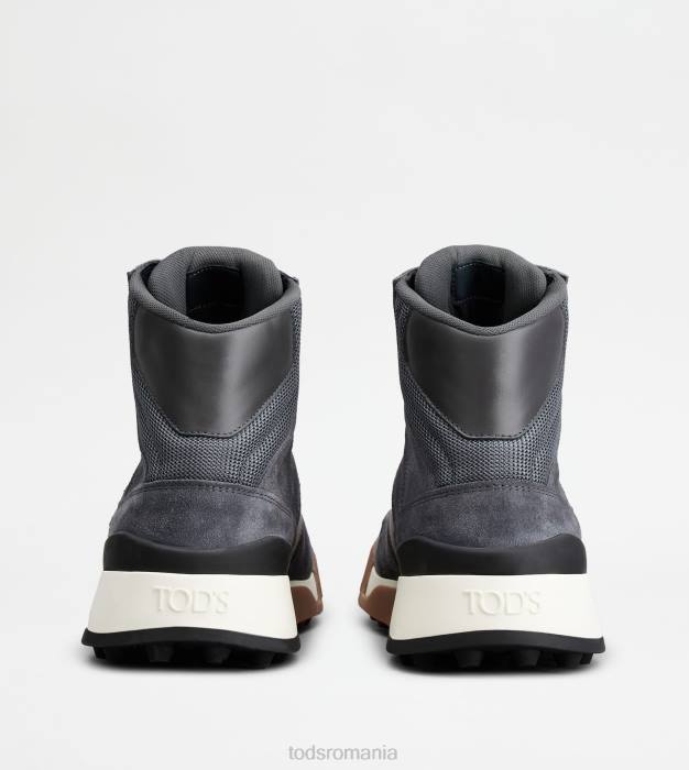 Selecția de pantofi sport Tod’s este îmbunătățită de un nou stil de talpă exterioară în două tonuri, care amintește de moștenirea mărcii prin tema emblematică cu pietricele de cauciuc. Confecționați din piele intoarsă, cu inserții din piele netedă și țesătură, acești adidași hi-top prezintă logo-ul tod’s ștampilat pe lateral.