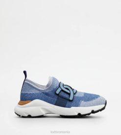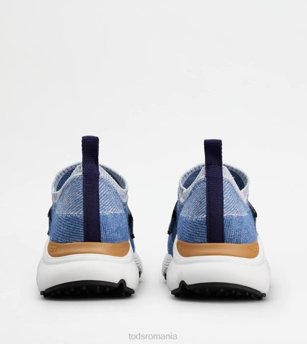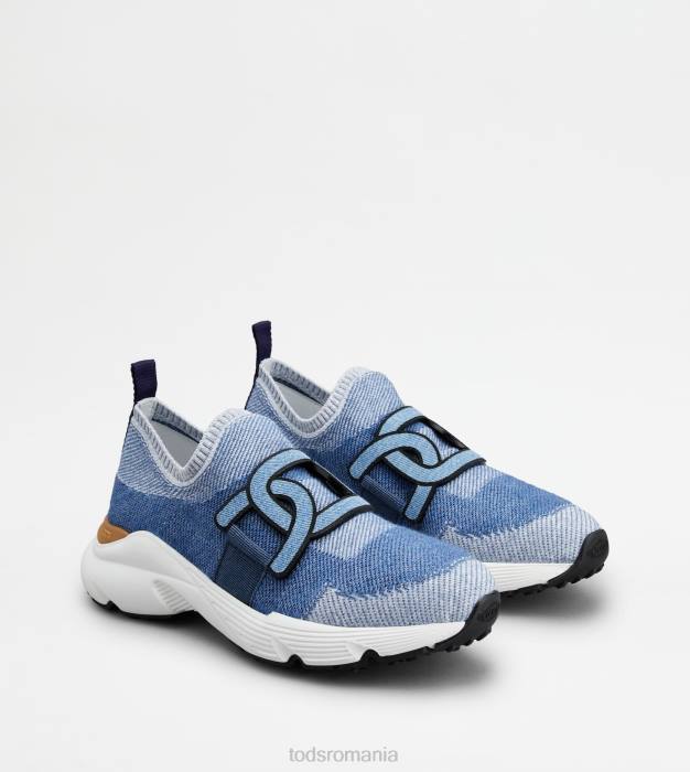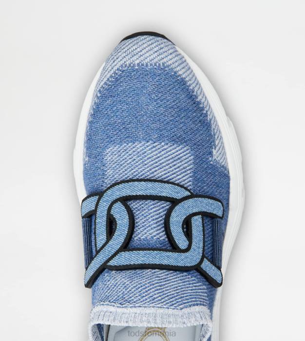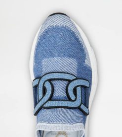 adidasi cu slip-on din denim stretch, cu accesoriul emblematic de lanț ton pe ton și talpă exterioară groasă de cauciuc.