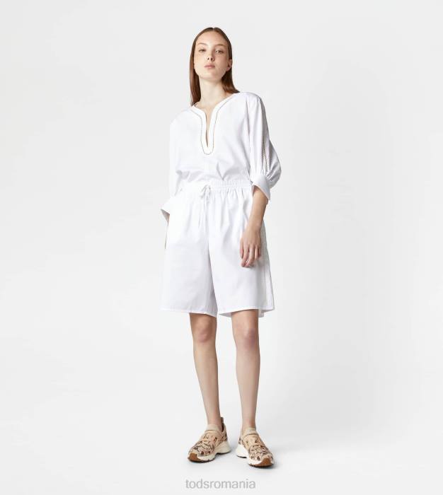 meandrele rafinate brodate la zi sporesc părțile laterale ale acestor bermude din poplin. avand o talie elastica cu siret care se innoda in fata, sunt o piesa vestimentara cu o atmosfera relaxata de vara.
