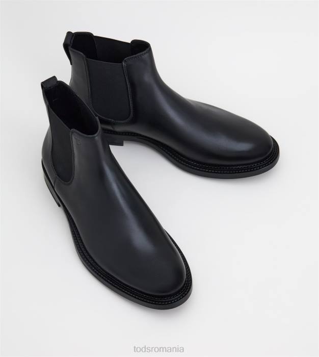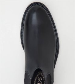 botine din piele elegantă cu monogramă tod’s ștanțată, inserții elastice laterale și talpă exterioară din cauciuc cu pietricele de cauciuc în relief.