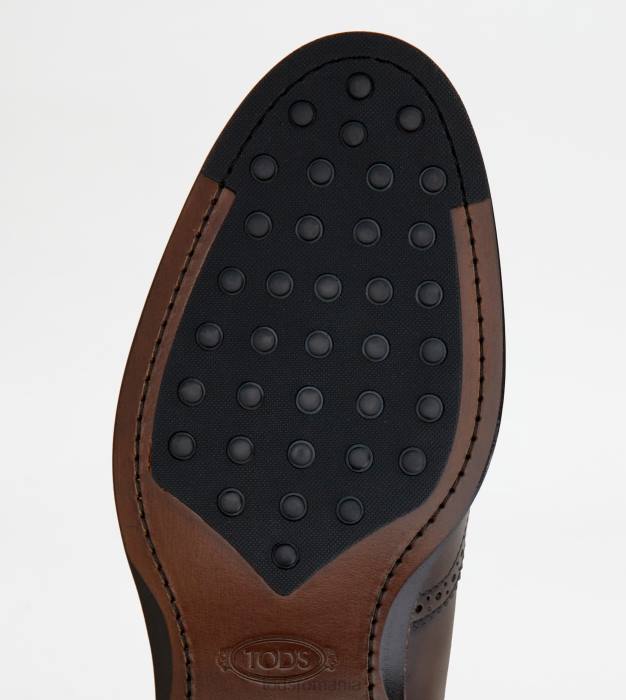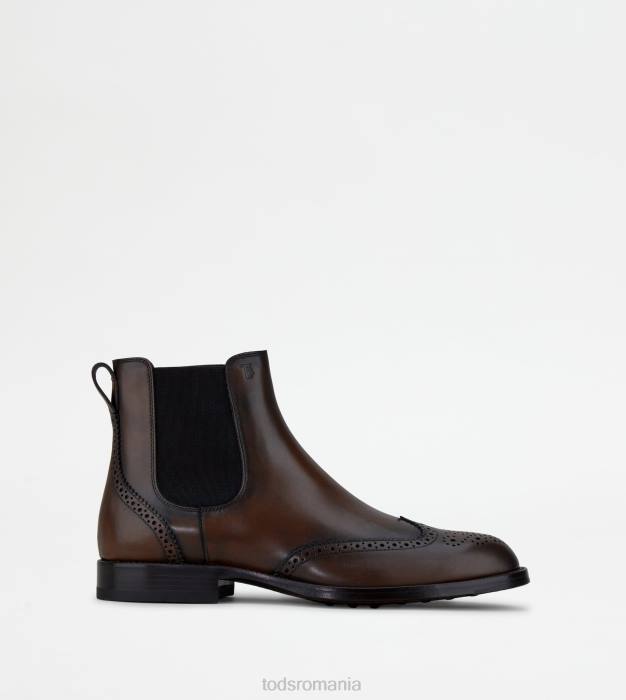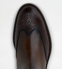 botine din piele eleganta cu efect usor vintage, perforatii si varful aripilor, insertii elastice laterale, monograma tod’s imprimata si talpa exterioara din piele cu injectie de cauciuc.