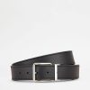 centură reversibilă cu cataramă cu limbă din metal marcată. caracterizat printr-o parte din piele intoarsa si una din piele neteda, se potriveste oricarei tinute.