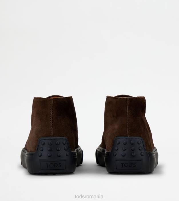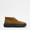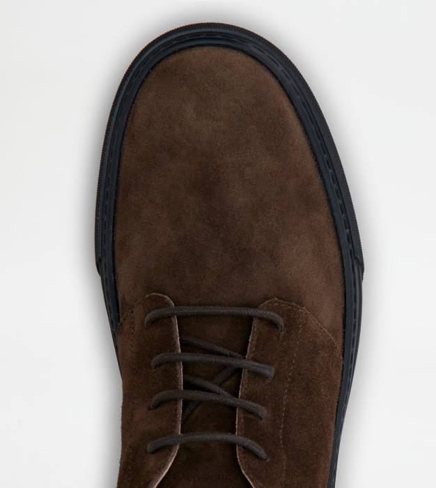cizme desert din piele intoarsa fina cu un usor efect vintage, detaliu cu pietricele de cauciuc pe calcai si talpa exterioara din cauciuc cu garnitura in contrast.