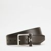 curea din piele fină, cu cataramă metalică împodobită cu logo-ul atemporal de marca metal t.