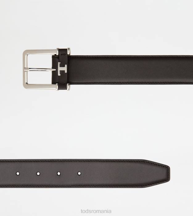 curea din piele fină, cu cataramă metalică împodobită cu logo-ul atemporal de marca metal t.