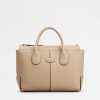 o nervură centrală și mânere tubulare caracterizează această geantă de cumpărături elegantă cu logo-ul tod’s imprimat în față. având o husă internă și o curea de umăr detașabilă, este confecționată din piele moale de vițel. pentru a însoți cu clasă și feminitate ținutele tale de zi cu zi.