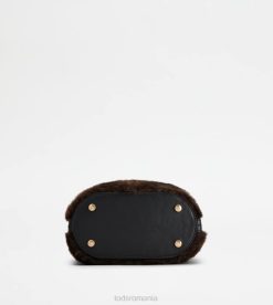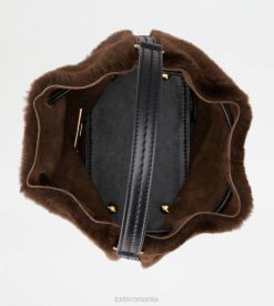 geantă atemporală din piele de oaie și piele micro femei Tod’s 080D432 maro/negru