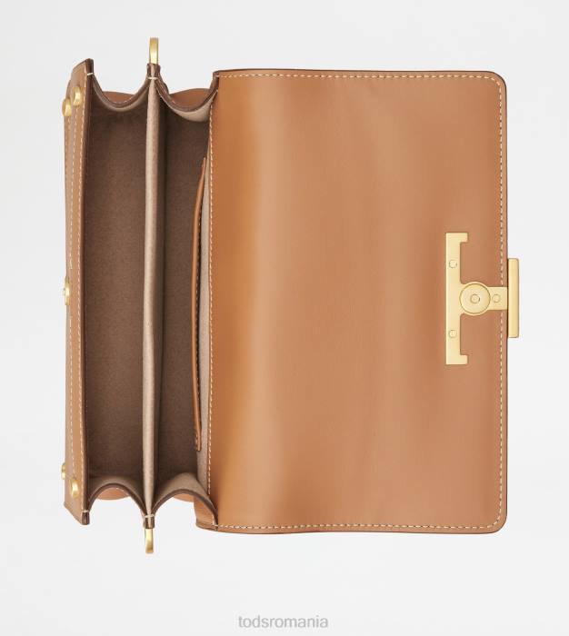 geantă din piele elegantă cu accesoriu din metal atemporal tod’s t, nituri de marcă și mâner reglabil și detașabil.