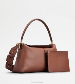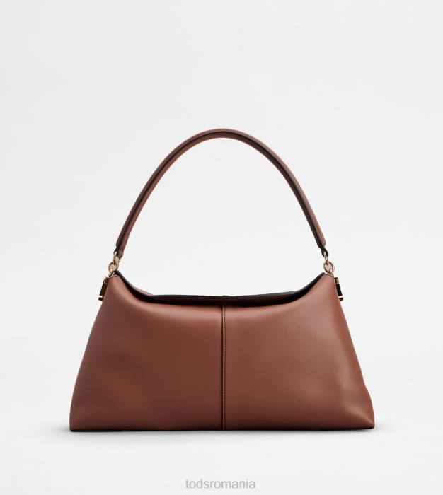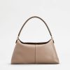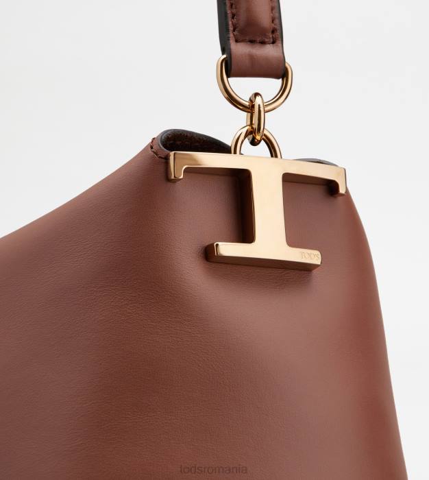 elementul distinctiv al acestei genți de umăr este închiderea originală, realizată prin suprapunerea a două clapete în formă. Confecționată din piele moale semi-lucioasă, are un mâner ușor căptușit și o curea de umăr detașabilă din pânză cu țesături din piele. accesoriul metal t atemporal împodobește partea laterală a acestei creații de linie esențială și feminină, care vine cu o husă interioară cu fermoar.