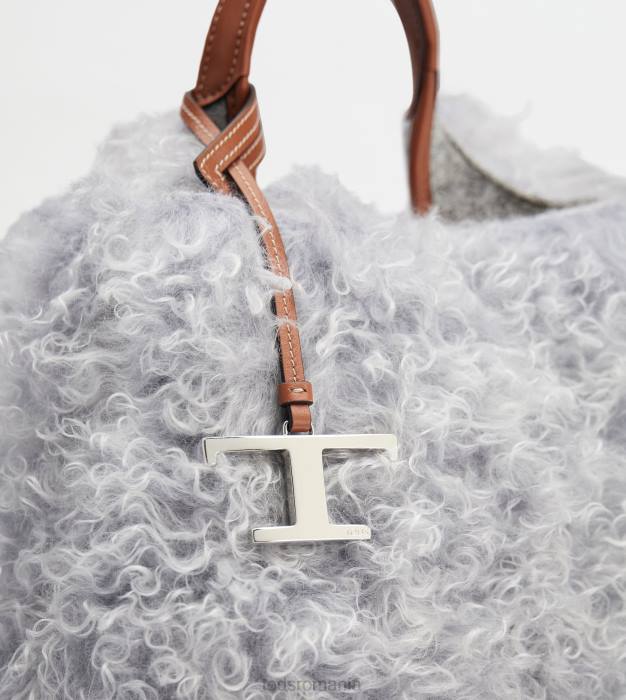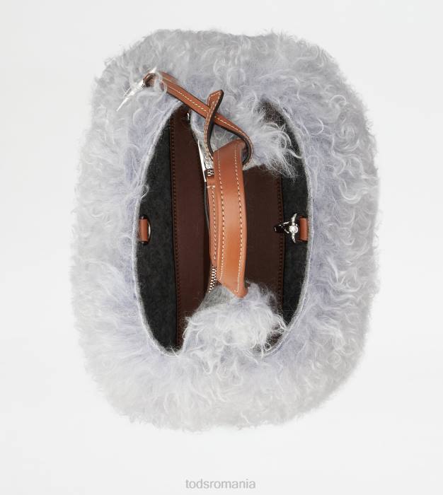geanta din mohair si piele mini femei Tod’s 080D355 gri/maro