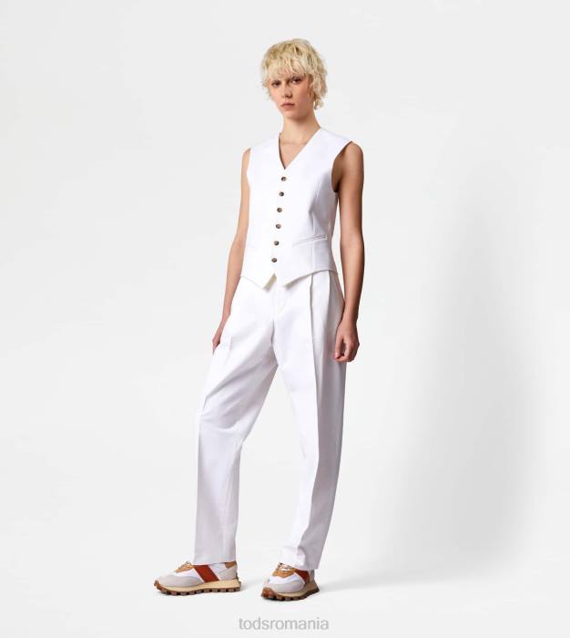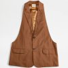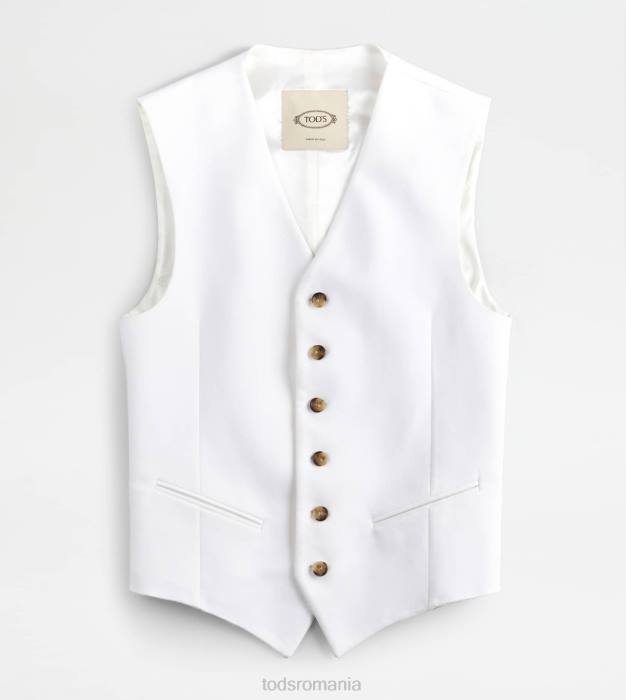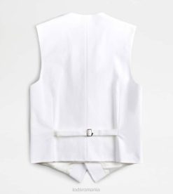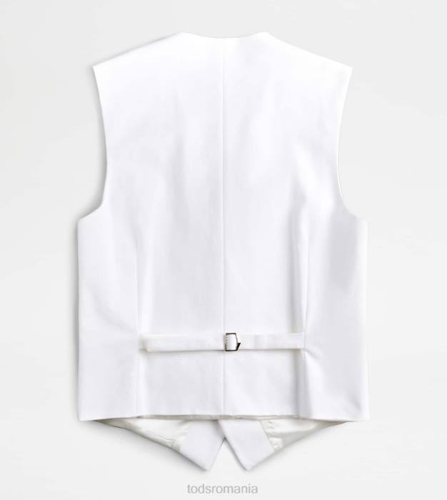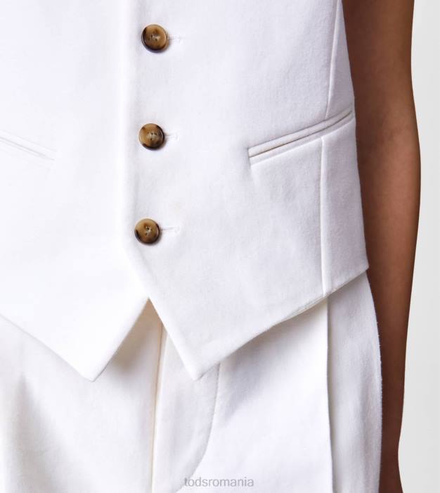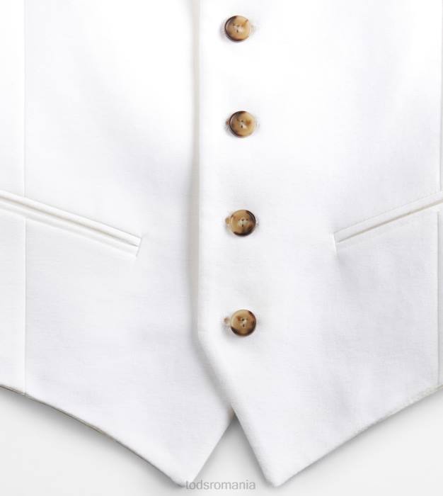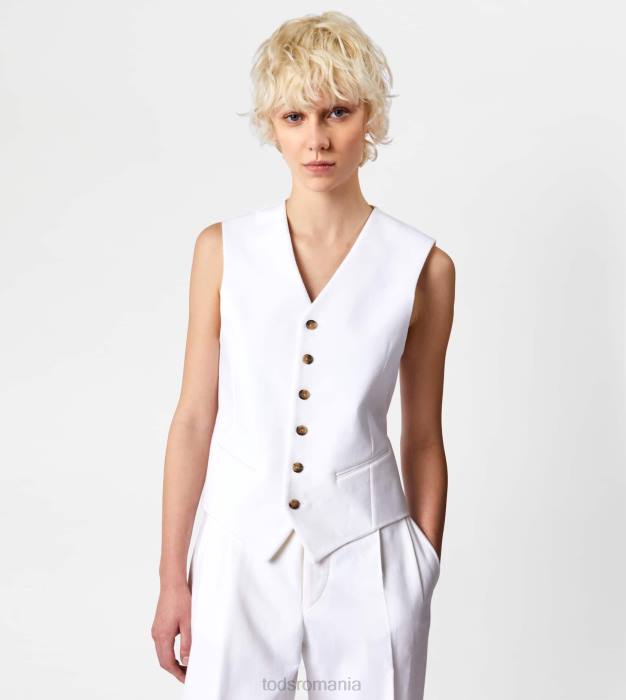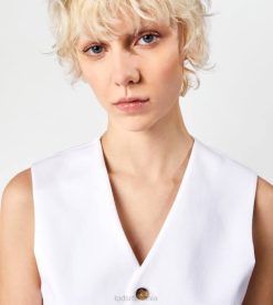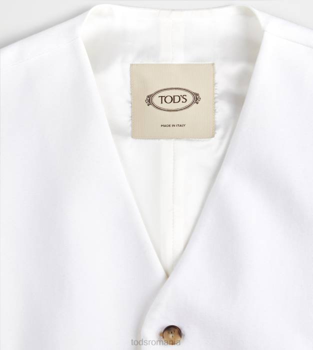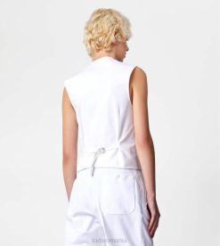 inspirația masculină și feminitatea contemporană coexistă în această vestă elegantă din bumbac elastic, cu tiv cu vârfuri. prinsă cu nasturi asigurați cu cusături distinctive în T, vine cu o curea reglabilă pe spate.
