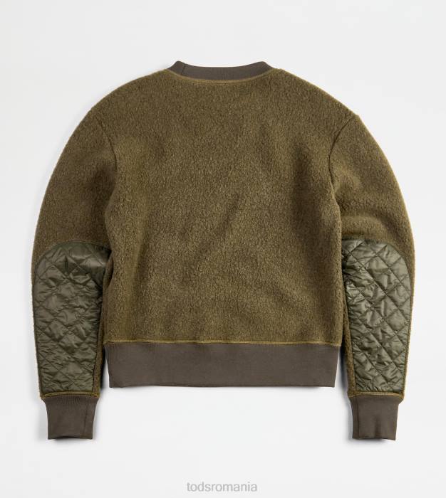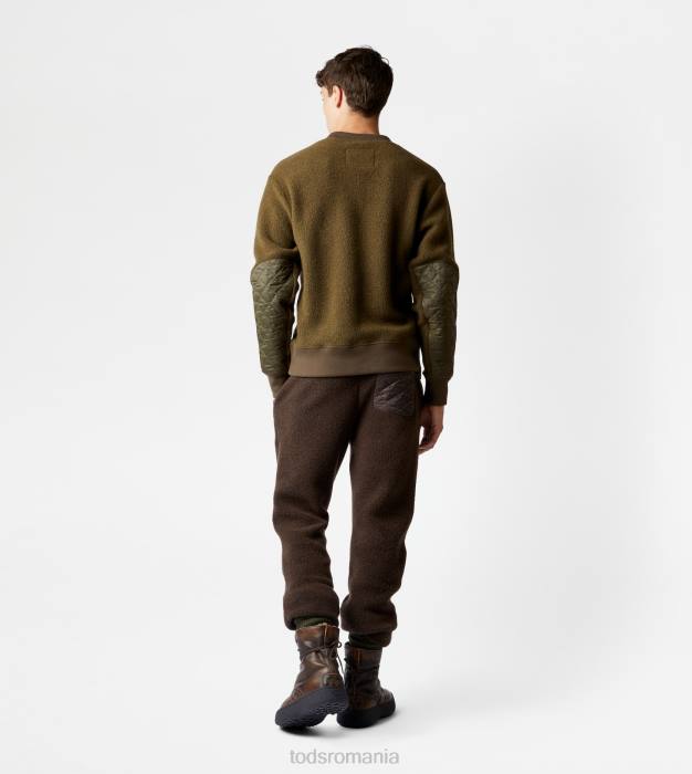 Hanorac cu gât rotund din jerseu moale de amestec de cașmir, cu petice matlasate pe mâneci. îmbogățit de eticheta laterală monogramă tod’s, interpretează un gust rafinat casual, cu referințe de stil sportiv.