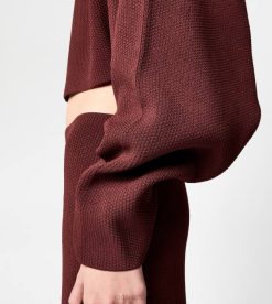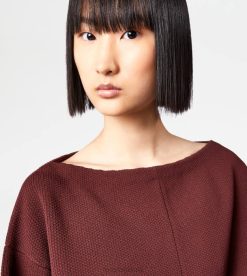 pulover cu guler de pânză, mânecă liliac și cusătură centrală. o creație versatilă, rafinată și feminină.
