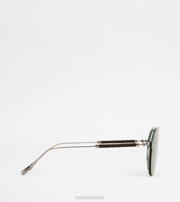 ochelari de soare cu construcție wayfarer, cadru metalic galvanizat și șuruburi în formă de T. un aspect sofisticat, înfrumusețat de țesutura fină a pielii de pe tâmplele de marcă.