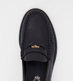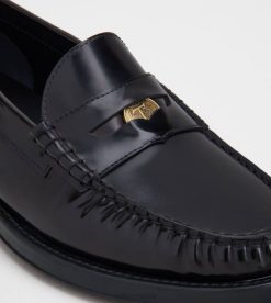 mocasini confectionati din piele eleganta semi-lucioasa cu cusaturi expuse manual. penny bar cu un accesoriu detașabil penny din metal de marcă, talpă exterioară din cauciuc cu pietricele de cauciuc în relief.