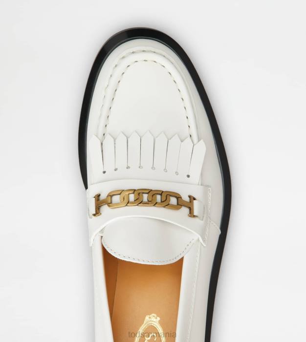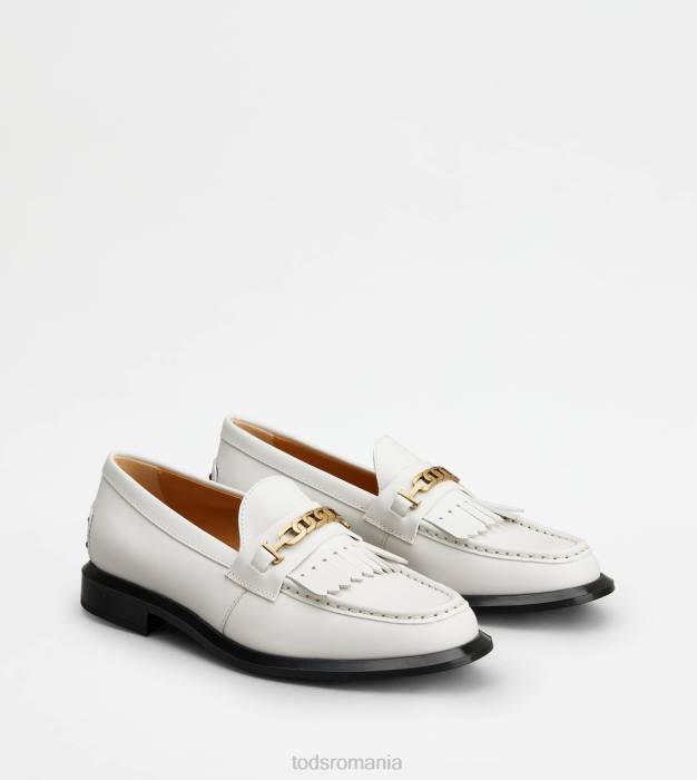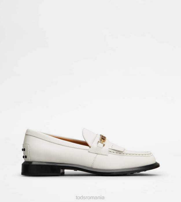 mocasini din piele cu franjuri femei Tod’s 080D40 alb