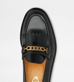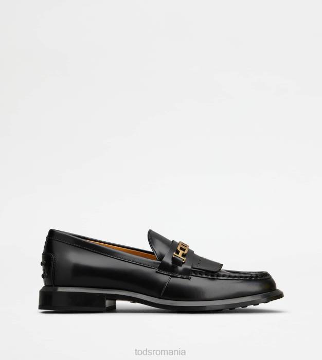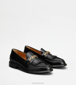 mocasini din piele semilucioasa, cu franjuri si accesoriu mini lant cu t-uri laterale. caracterizate printr-o talpă exterioară din cauciuc cu pietricele de cauciuc în relief, sunt un stil de eleganță atemporal.