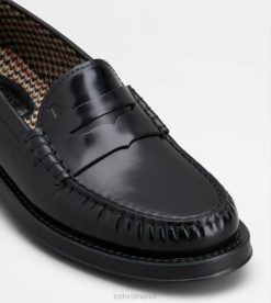 mocasini din piele eleganta cu penny bar si cusaturi expuse manual. talpă exterioară din cauciuc cu pietricele de cauciuc în relief, căptușeală din tweed cu model din picioare de găin.