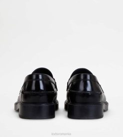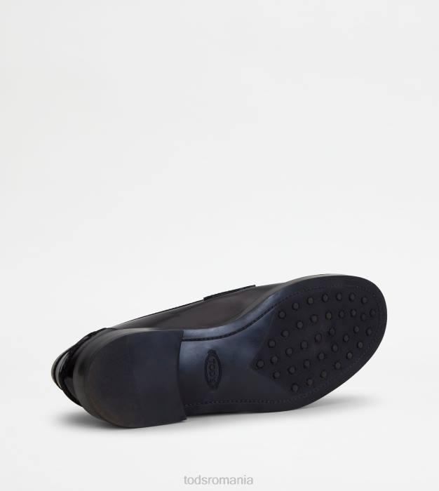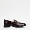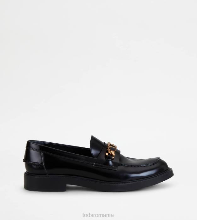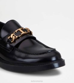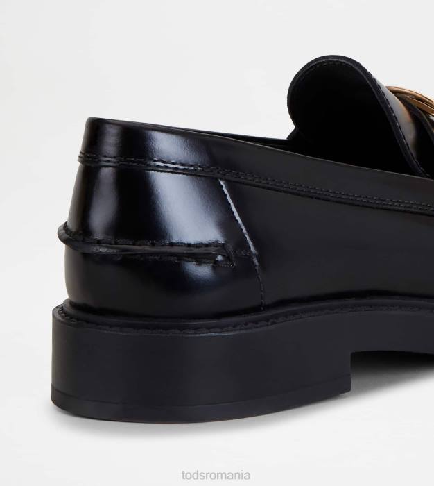 mocasini din piele rafinata cu penny bar, accesoriu de lant in T metalic si talpa exterioara din cauciuc cu pietricele de cauciuc in relief.