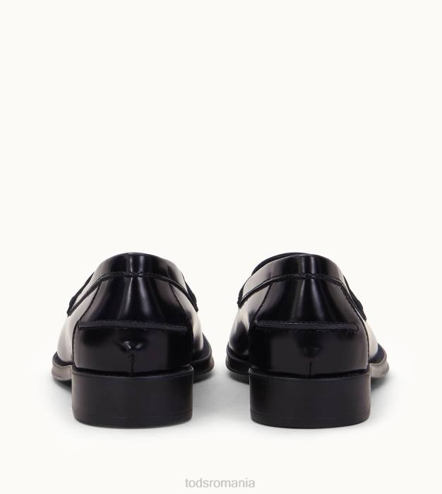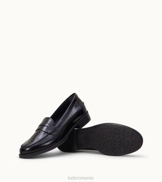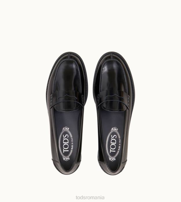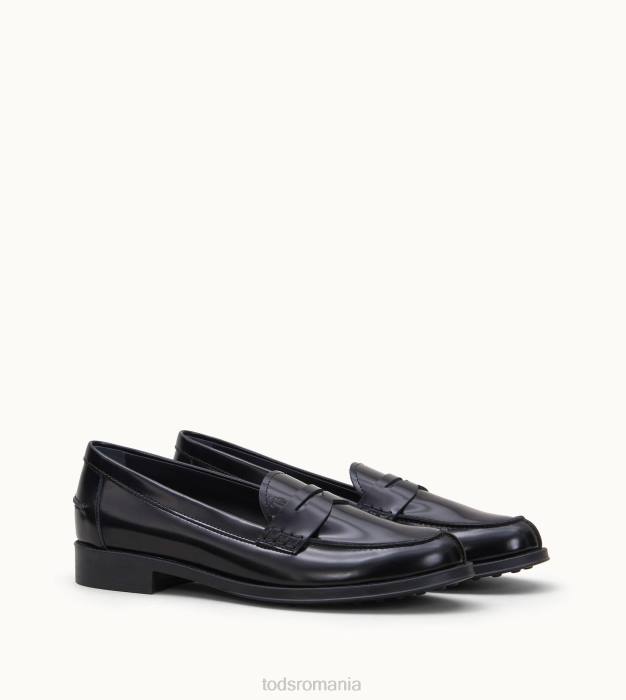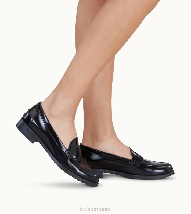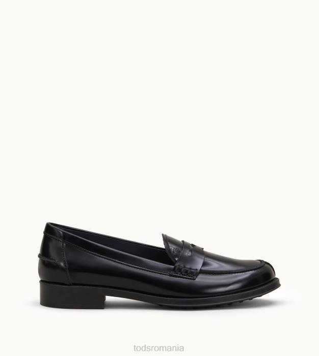 mocasini din piele periată cu penny bar, monogramă tod’s imprimată la cald și talpă din cauciuc cu pietricele de cauciuc în relief.
