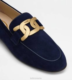 mocasini din piele intoarsa catifelata, cu un accesoriu de lant marca metal, lise din piele neteda si talpa exterioara din piele.