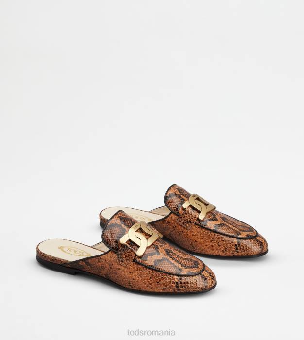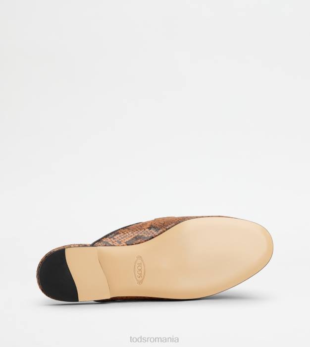 mule Kate din piele cu imprimeu de reptile femei Tod’s 080D233 negru/maro