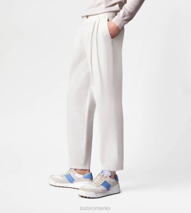 pantaloni în stil morcov cu săgeți în față, confecționați din țesătură acoperită. Dispunând de buzunare înclinate în față și buzunar la spate cu nasture, acestea au o închidere ascunsă cu nasturi. o piesa vestimentara versatila, cu o eleganta informala si relaxata.