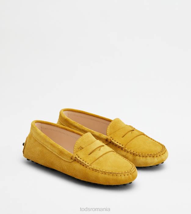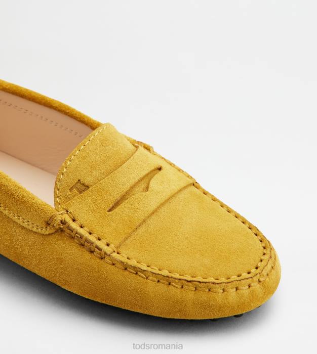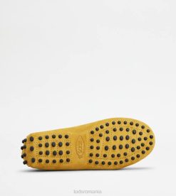 tod’s junior gommino din piele intoarsa, cu cusaturi de mana expuse, penny bar, monograma Tod’s imprimata la cald si emblematica talpa exterioara de pietricele de cauciuc.