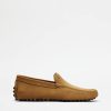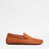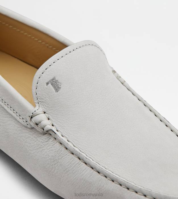pantofii de șofer gommino într-o versiune cu papuci, confecționați din nubuc mătăsos, cu monogramă Tod’s ștampilată și talpa exterioară din cauciuc emblematică. o eleganță informală și o măiestrie iconică.