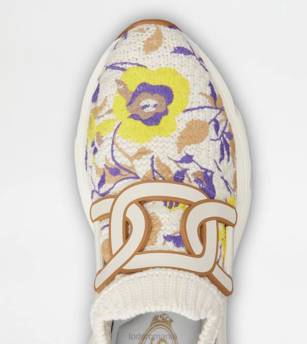 adidași șosete cu broderie florală. caracterizate printr-o talpă groasă de cauciuc inspirată de alergare, acestea vin cu accesoriul emblematic de lanț din piele.