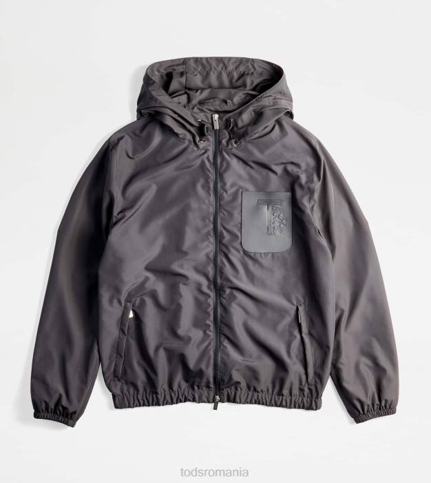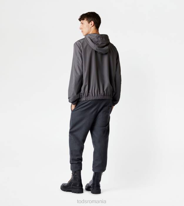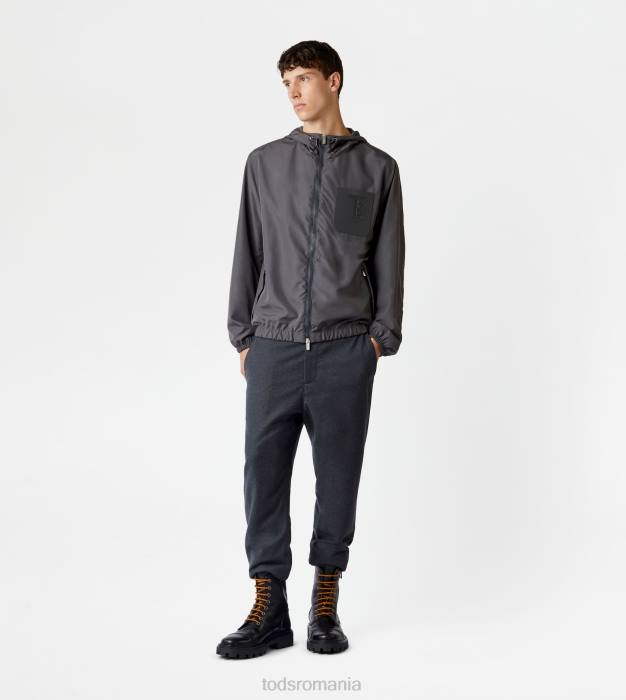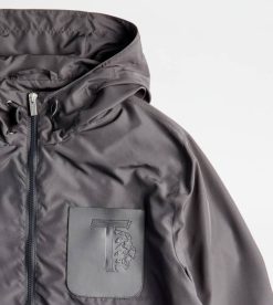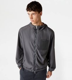 Fabricat dintr-o țesătură tehnică rezistentă la apă, această jachetă de vânt combină funcționalitatea și gustul pentru detaliile artizanale. având o glugă cu șnur reglabil, vine cu buzunare inferioare cu fermoar și buzunar emblematic de la piept, din piele, cu monogramă Tod’s ștampilată.