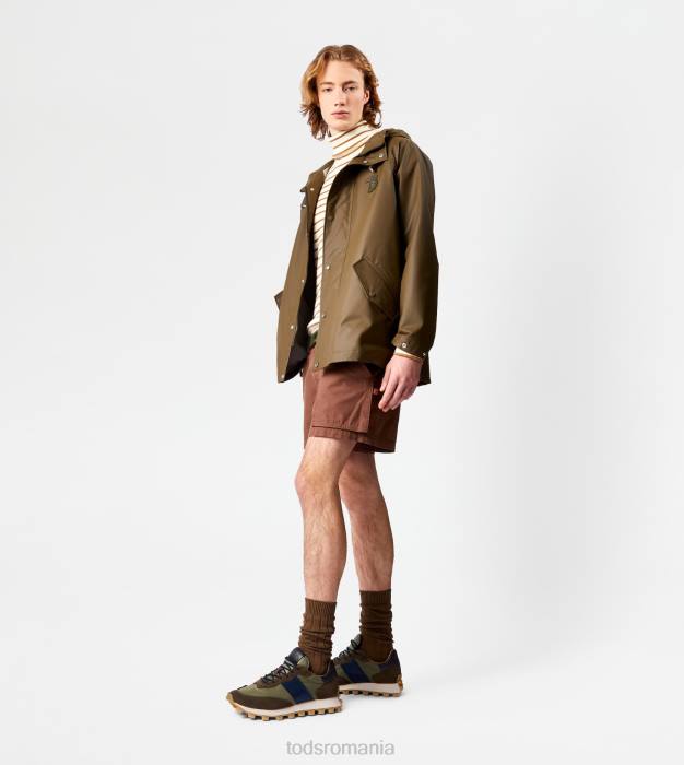 Confecționată din material tehnic cauciucat în amestec de bumbac, această parka fără căptușeală vine cu plasture cu monogramă tod’s în față, mâneci raglan și buzunare înclinate cu clapă. gluga lată are un șnur cu capete din piele, finisat cu cusături lucrate manual. prinsă cu fermoar cu glisare dublă ascunsă și cu capse cu marca, acest articol de îmbrăcăminte este perfect pentru aspectul ploios urban de mijloc de sezon.