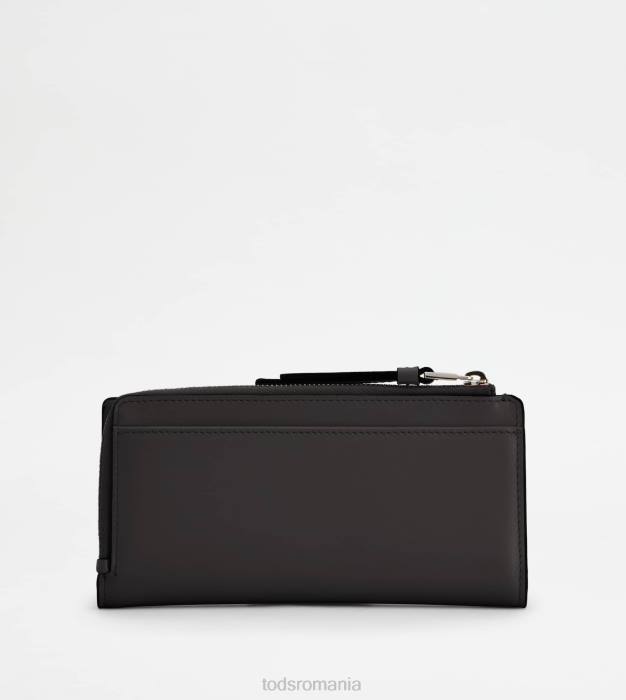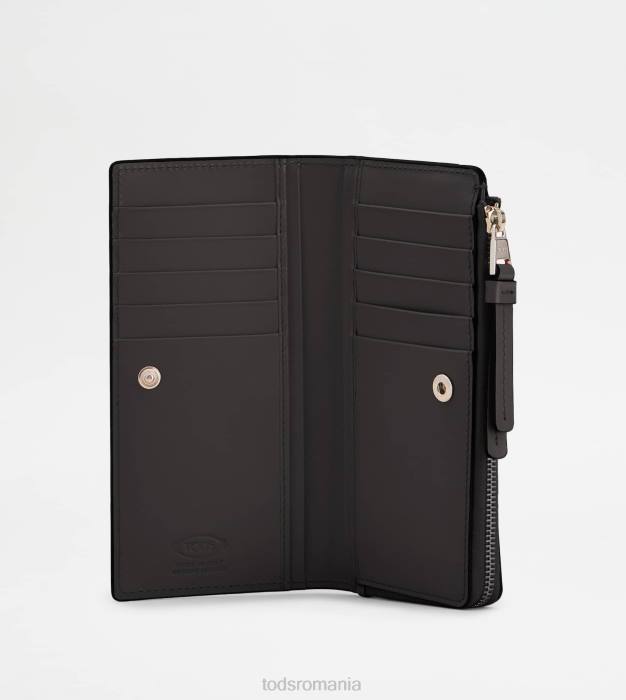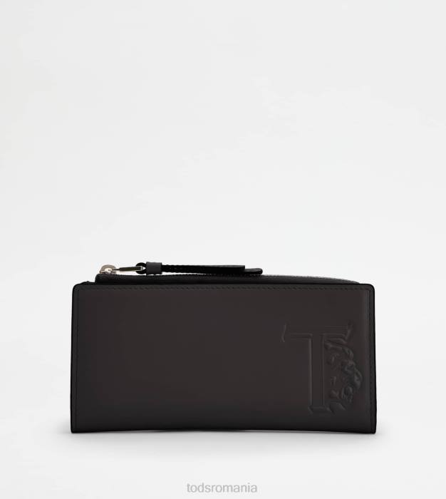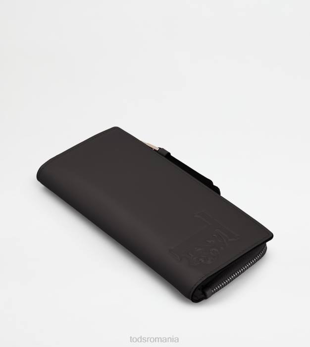 portofel unisex din piele fină cu monogramă tod’s maxi ștanțată și cusături expuse. compartiment pentru monede cu fermoar, buzunare plate și sloturi pentru carduri.