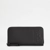 portofel unisex din piele fină cu monogramă tod’s maxi ștanțată, cusături expuse, buzunar exterior.