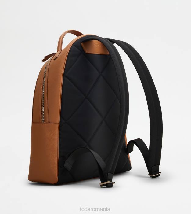 rucsac din piele rafinata ciocanita cu insertii din piele neteda, buzunar maxi cu monograma tod’s stampilata, spate si bretele captusite din material textil.