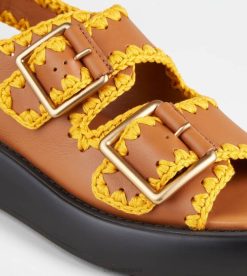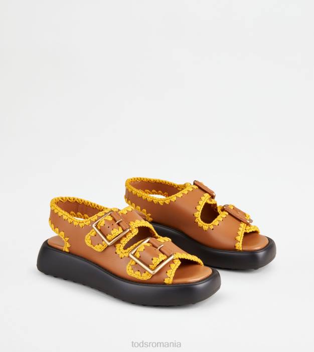 sandale cu bretele duble din piele femei Tod’s 080D202 maro
