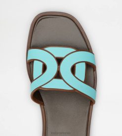 sandale din piele femei Tod’s 080D212 albastru deschis