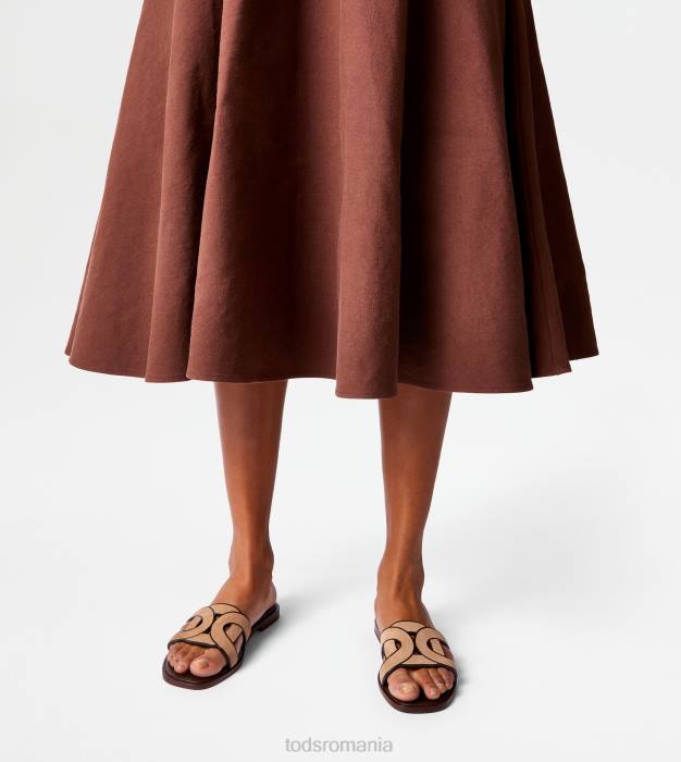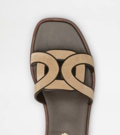 sandale din piele intoarsa moale cu bareta conturata, care amintesc de accesoriul emblematic de lant. avand talpa exterioara din piele, aceasta este un passe-partout in look-ul tau de vara.