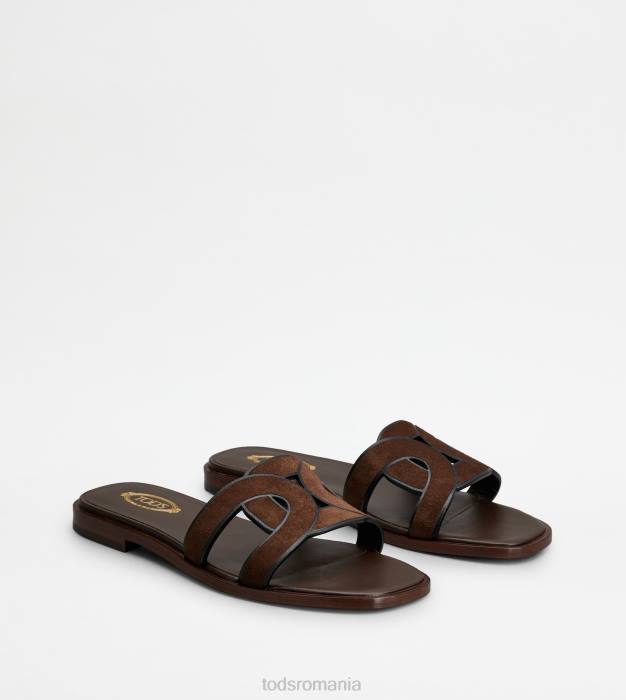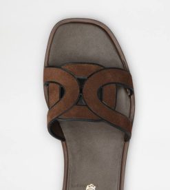 sandale din piele intoarsa moale cu bareta conturata, care amintesc de accesoriul emblematic de lant. avand talpa exterioara din piele, aceasta este un passe-partout in look-ul tau de vara.