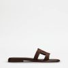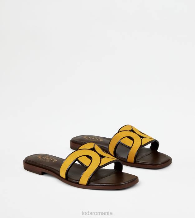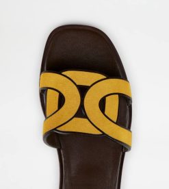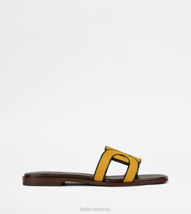 sandale din piele intoarsa moale cu bareta conturata, care amintesc de accesoriul emblematic de lant. avand talpa exterioara din piele, aceasta este un passe-partout in look-ul tau de vara.