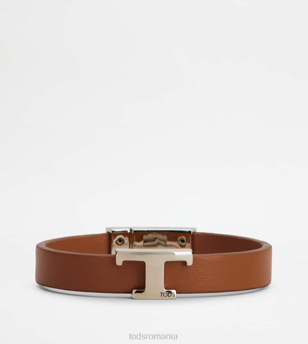 brățară din piele fină, cu accesoriu t atemporal și închizătoare metalică.