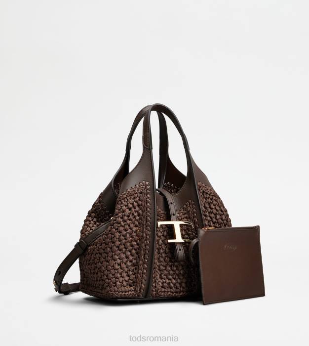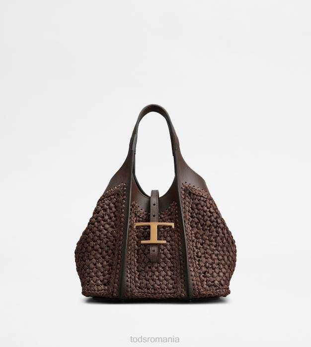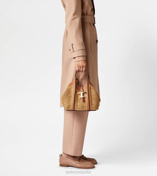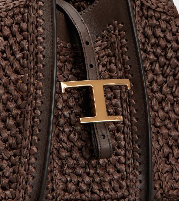 geantă de cumpărături cu linii fluide, realizată din rafie, cu detalii fine croșetate și inserții din piele. caracterizat prin accesoriul pandantiv atemporal de marca metal t, vine cu doua manere fixe, curea de umar reglabila si detasabila, husa interioara.