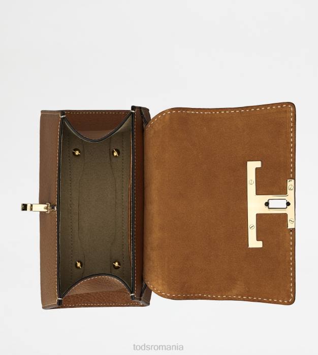 geanta de mana din piele ciocanita cu nervura centrala, maner fix si curea de umar reglabila si detasabila. închis cu o clapă și o cataramă atemporală cu închidere, are un pandantiv cu lacăt și cheie și picioare metalice.