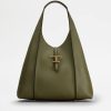 geantă hobo din piele fină ciocănită, cu nervuri centrale și pandantiv atemporal din metal marcat. o creație versatilă și feminină, cu picioare de jos și husă interioară cu logo-ul tod’s ștampilat.