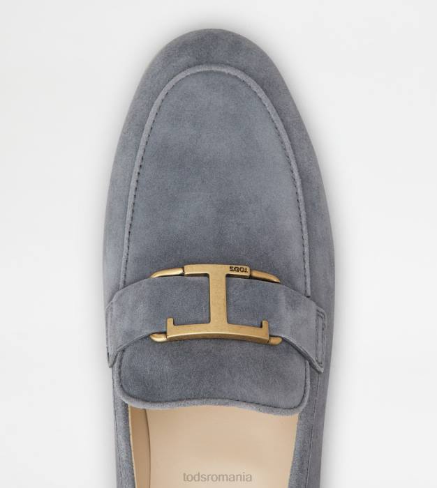 mocasini din piele intoarsa catifelata, cu talpa din piele. un stil cu gust sobru și atemporal, combinat cu accesoriul atemporal metal t marca maxi.