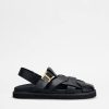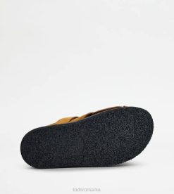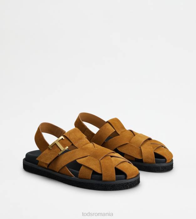 sandale cu benzi încrucișate de piele intoarsă și curea pentru călcâi. inchise cu o curea impodobita cu accesoriul atemporal metal t marcat, au talpa exterioara din cauciuc ultra usoara cu coada din piele. un stil într-o dispoziție relaxată și lejeră, o sinteză a gustului artizanal și a atitudinii contemporane.